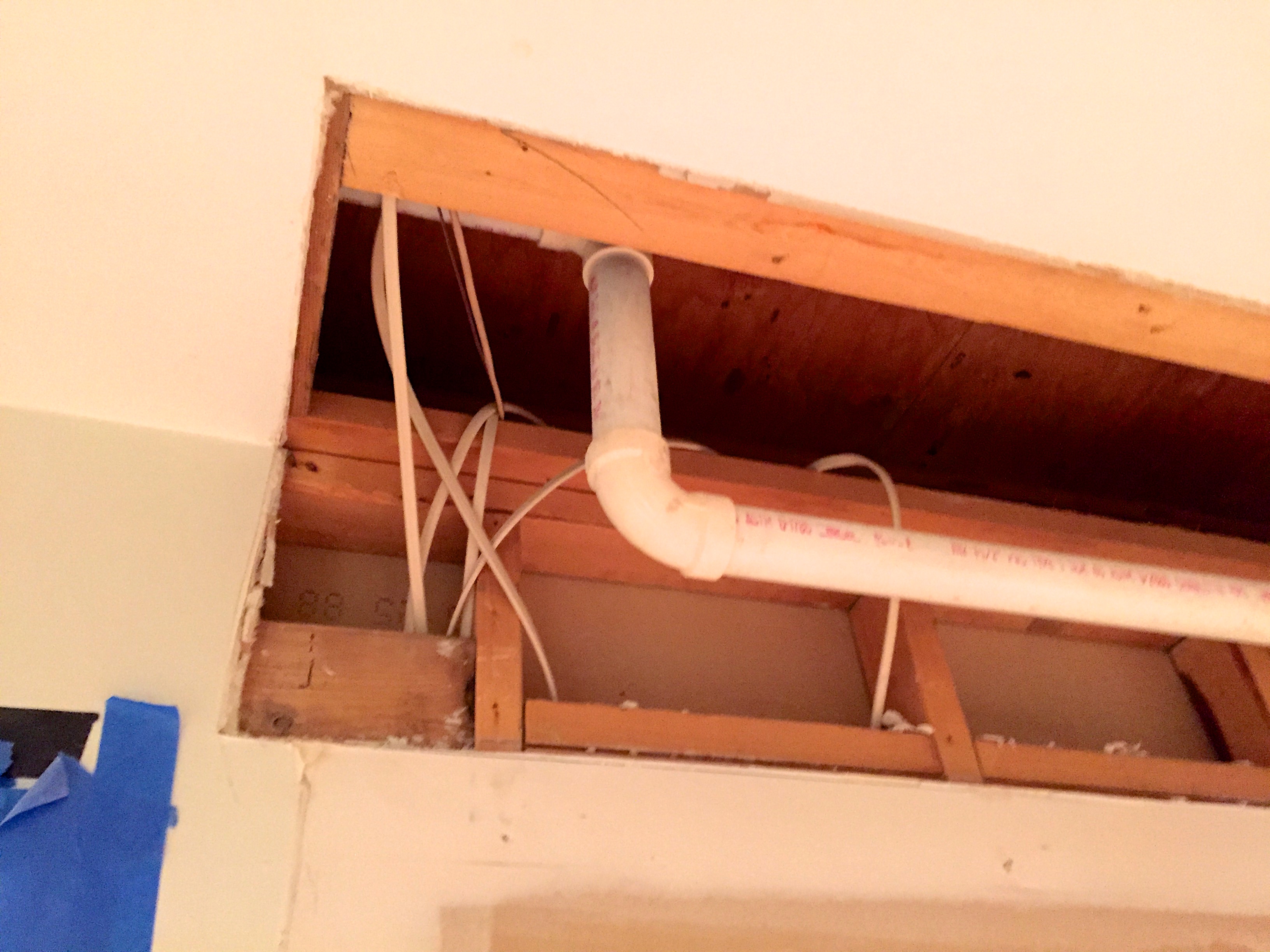 Other surprises will turn out costly because they hadn’t been factored into the budget. In our case, the blind bulkheads above the cabinets–a common cheap-o practice of past decades–turned out not to be so “blind.” Instead, they housed an array of unidentified wires and strange flexible water lines as well as a random plumbing vent that had no business being there.